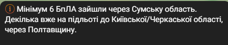 Провідомляється про 6 безпілотників у небі над Сумською областю.