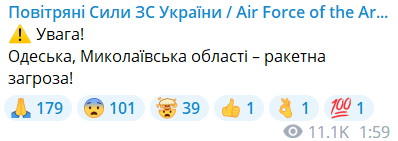 Оновлено 02:02. Також ракетна загроза в Одеській та Миколаївській областях.