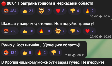 Моніторингові канали попереджають, що цієї ночі можлива масштабна повітряна тривога