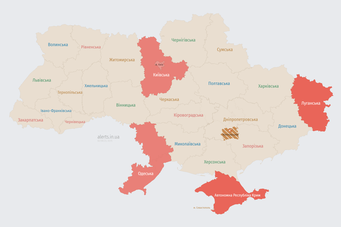 Додамо, що ночі, 2 серпня, у Києві оголошено повітряну тривогу. Є загроза удару безпілотників. Також "червоними" залишається й низка інших областей.