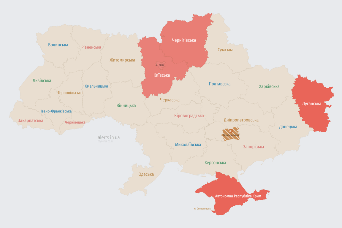 Також ми писали, що вночі, 3 серпня, в Україні оголошено повітряну тривогу. "Почервоніли" Київська, Чернігівська, Полтавська та інші області. Є загроза атаки ворожих БпЛА.