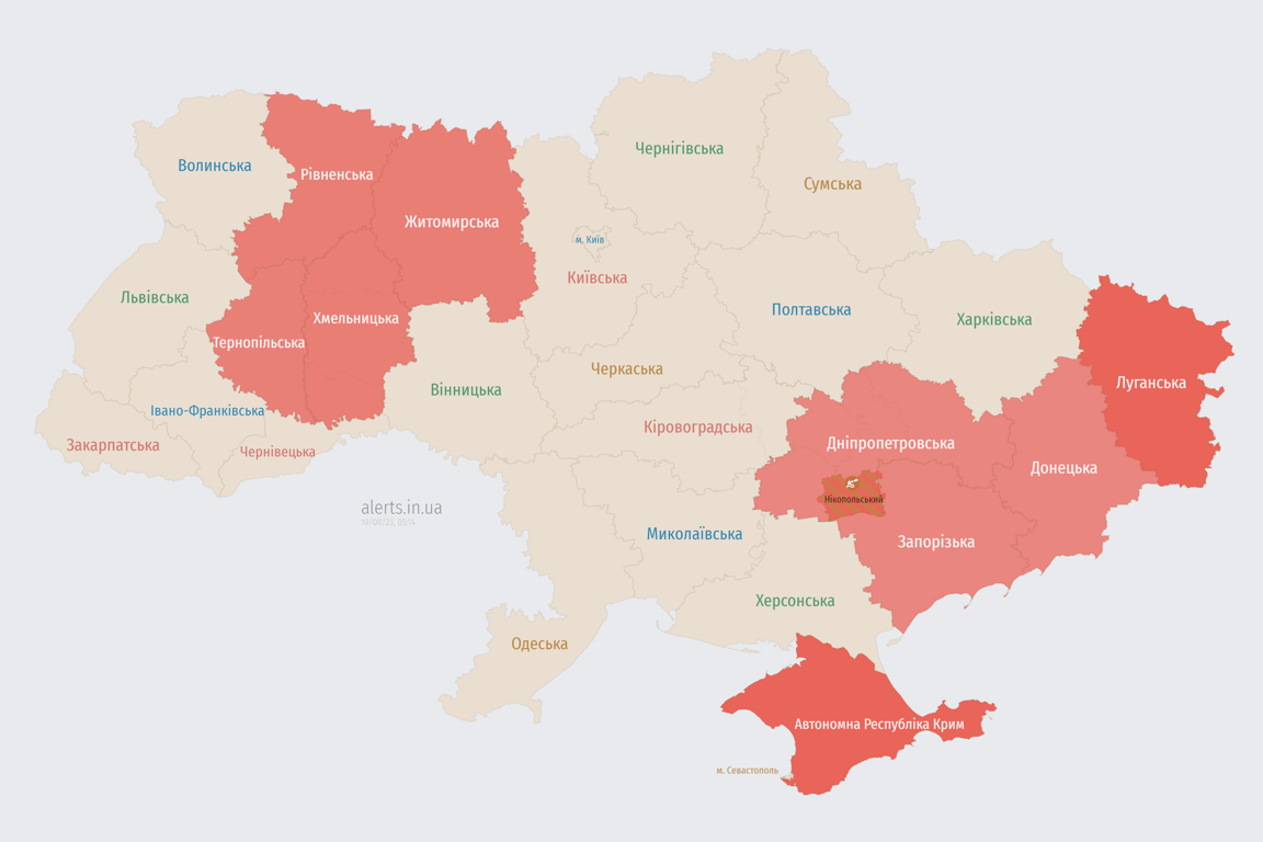 Додамо, що в Україні зберігається загроза удару безпілотниками в "червоних" областях. Так, під час повітряної тривоги на Хмельниччині вночі, 19 серпня, пролунали потужні вибухи, які ймовірно свідчать про роботу сил ППО.