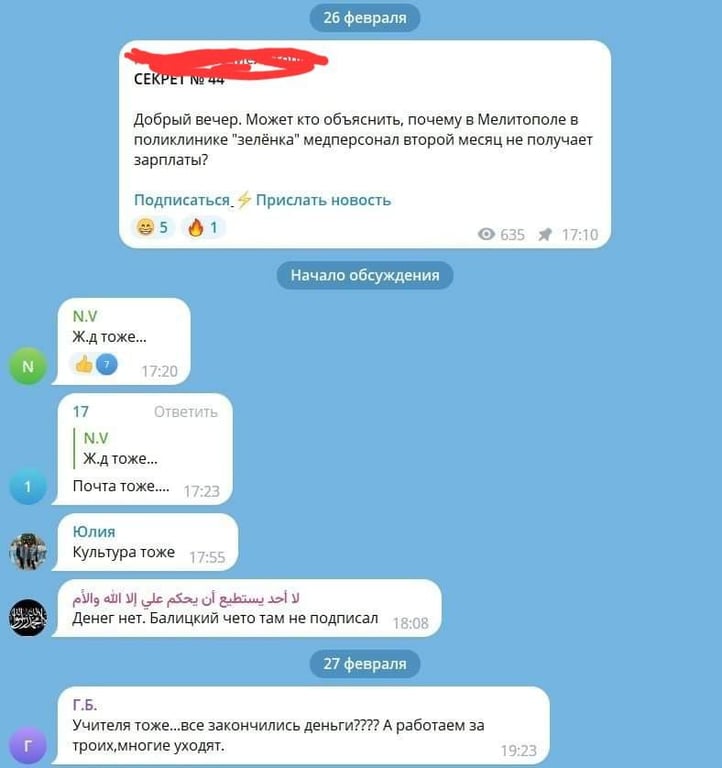 Люди у місцевих чатах жаліються, що вже два місяці вимушені сидіти без зарплати. Зокрема, йдеться про працівників бюджетних установ — пошти, вокзалу, шкіл.