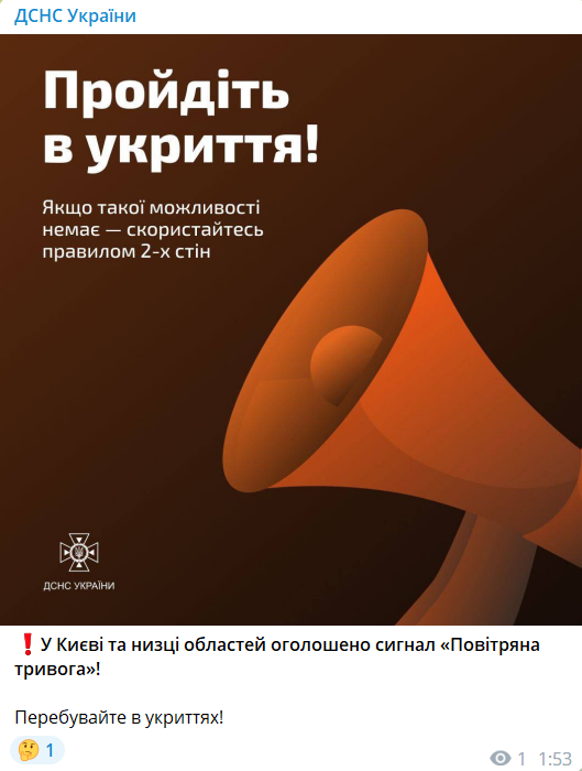 Оновлено 01:53. У ДСНС закликають залишатись в укриттях.