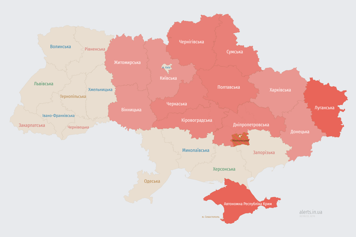 Повітряна тривога вночі 30 серпня: мапа тривог