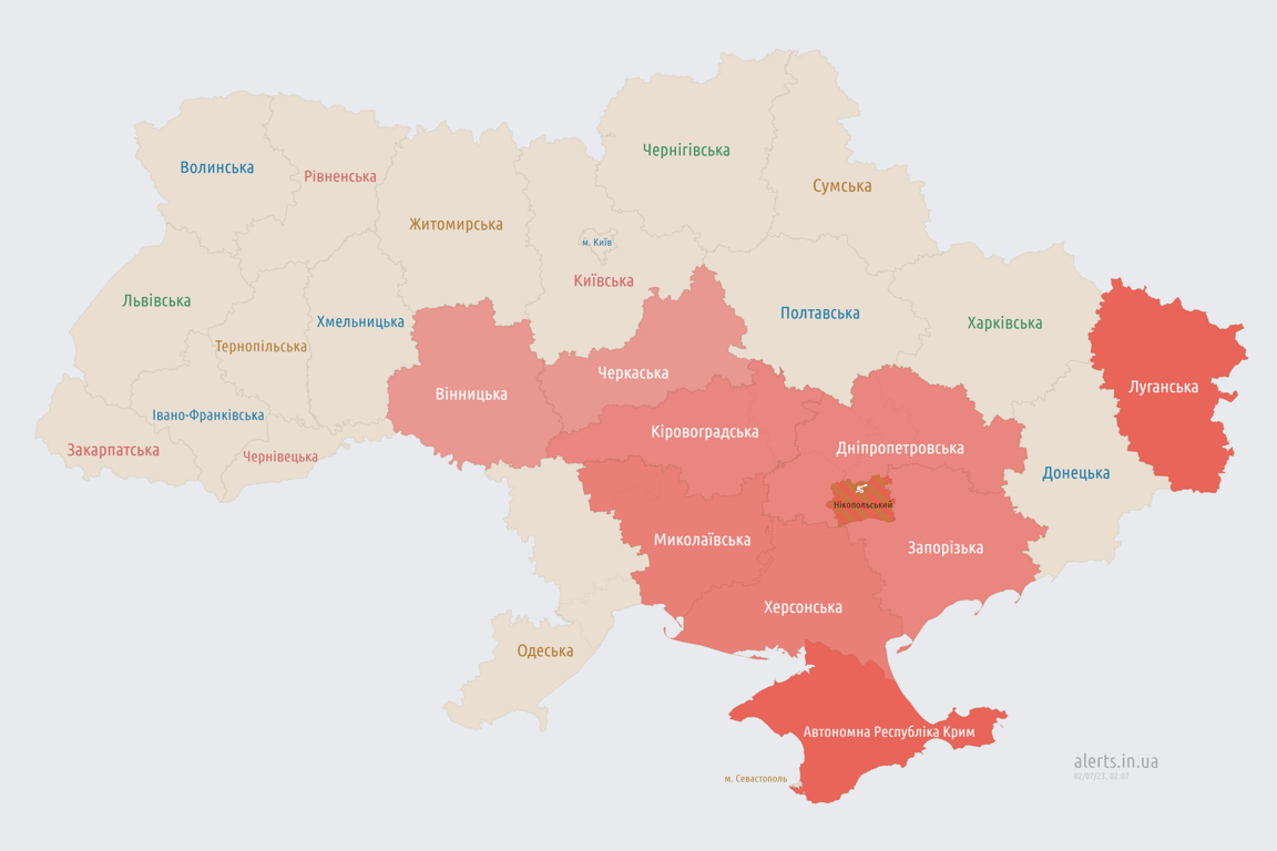 Нагадаємо, що вночі 2 липня в Україні оголошено повітряну тривогу. "Почервоніли" Миколаївська, Херсонська та низка інших областей.