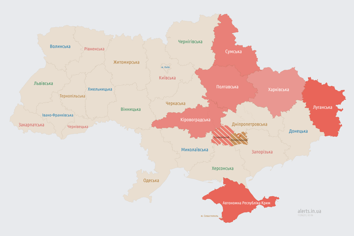 Вночі, 11 червня, в Україні було оголошено повітряну тривогу. Також пролунали вибухи в Харкові.