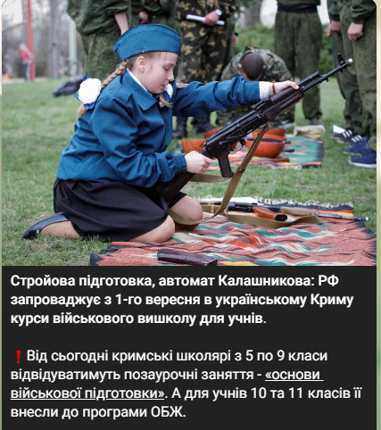 З початком нового навчального року для дітлахів окупованого Криму запроваджується ще одна дисципліна — основи військової підготовки.