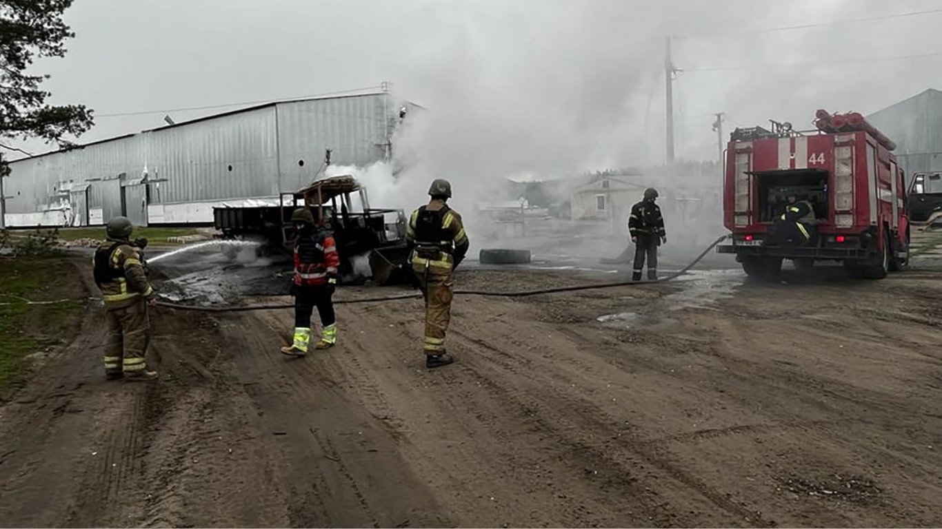 До місця виклику було направлено два оперативні відділення рятувальників 44-ї Державної пожежно-рятувальної частини. На момент їх прибуття на дорозі горів трактор та причеп.