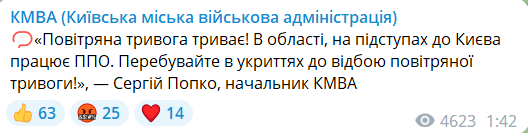 Обновлено 01:58. В настоящее время воздушная тревога продолжает распространяться по Украине из-за активности вражеской тактической авиации.