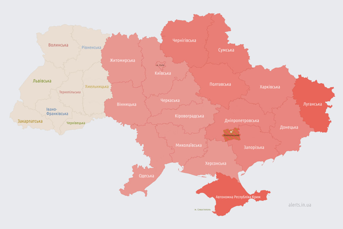 Воздушная тревога охватила часть территории Украины. Находитесь в укрытии.