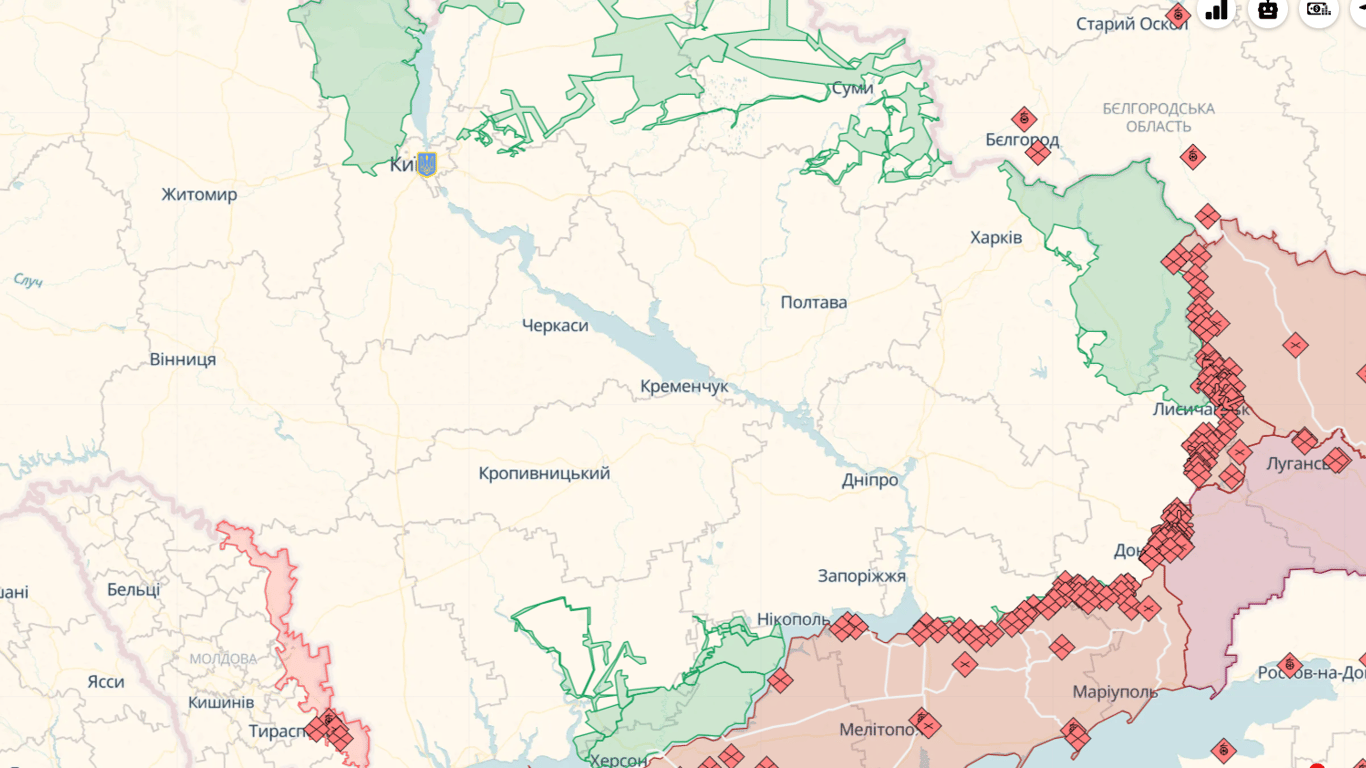 За ходом главных событий на фронте во время полномасштабного вторжения, начатого РФ в Украине, можно наблюдать в режиме реального времени. На онлайн картах можно увидеть все места боевых действий и обстрелов, а также актуальные границы временно оккупированных территорий.