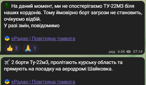 Воздушные Силы Украины сообщают о вылете Ту-22м3.