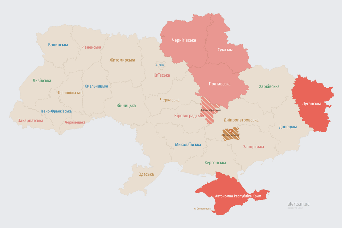 Воздушная тревога ночью 30 августа: карта тревог