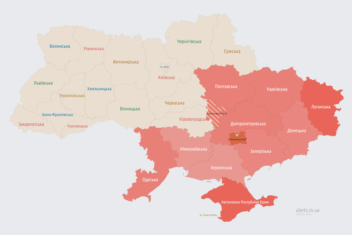Напомним, что ночью, 18 июля, в Украине в ряде областей объявлена воздушная тревога. Также существует угроза применения баллистического вооружения.