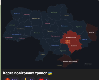 Карта воздушных тревог выглядит следующим образом: