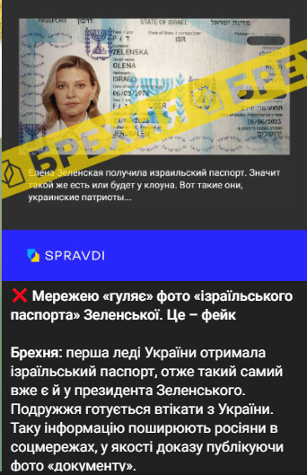 РФ распространяет фейки об израильском паспорте первой леди Украины