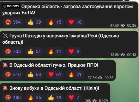 В Одесской области ночью, 6 сентября, раздаются взрывы. Так, под обстрел попало такое направление как Килия — Измаил — Рени. Воздушную тревогу в регионе не объявляли.