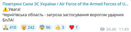 Отметим, в настоящее время в Киеве и северных областях Украины объявлена воздушная тревога.