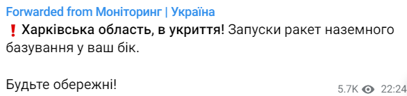 Позже мониторинговые группы сообщили, что Харьковщина находится под обстрелом ЗРК С-300, которые враг запускает из Белгородщины.