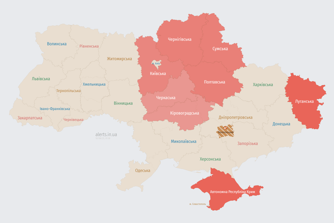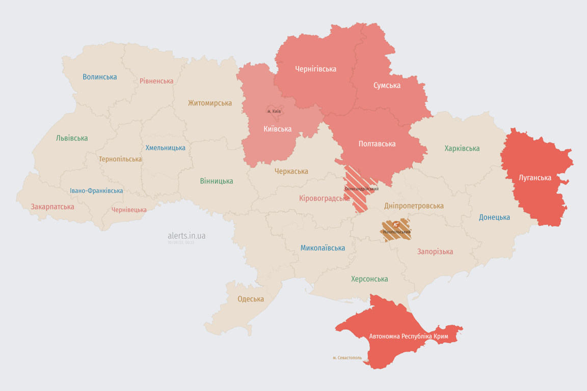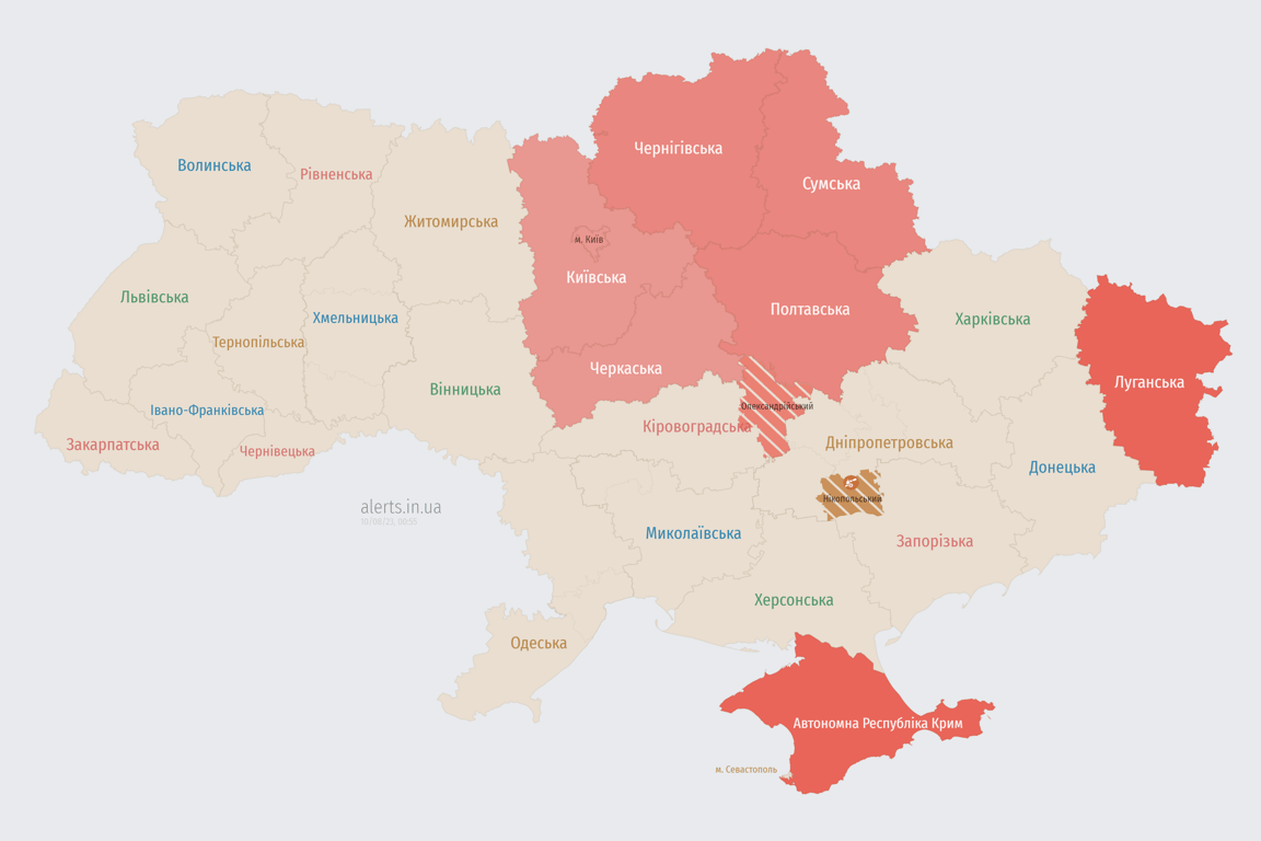 В ряде северных областей Украины ночью, 10 августа, есть угроза применения врагом ударных БпЛА. В Киевской, Черниговской, Полтавской и других областях объявлена воздушная тревога.