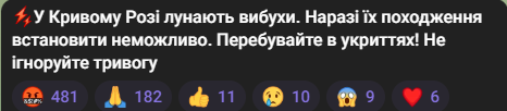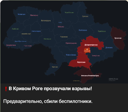 Мониторинговые каналы также сообщают о звуках взрывов в Кривом Роге.