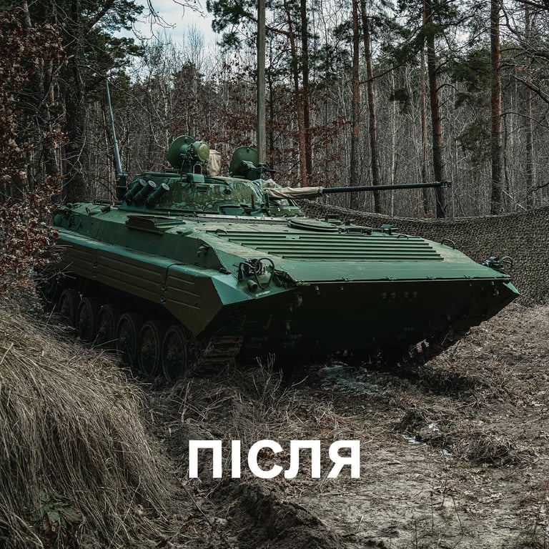 "На фото "ДО" вы видите технику, которой мы принимаем ее в ремонт; на фото "ПОСЛЕ" – которой она выходит от нас в боевые подразделения. Не иначе как ювелирная работа наших сотрудников, без преувеличения героев оборонки", - написали в Укроборонпроме.