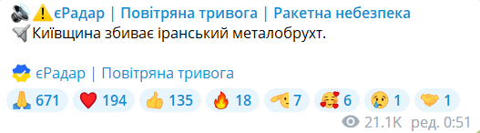 В Киевской области ночью, 13 июля, раздаются взрывы. Также в ряде областей объявлена воздушная тревога.