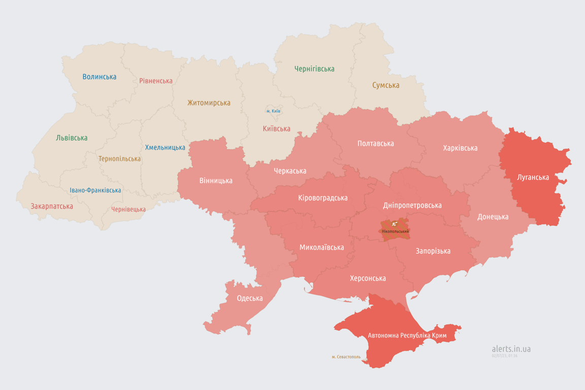 Напомним, что ночью 2 июля в Украине объявлена воздушная тревога. "Покраснели" Николаевская, Херсонская и ряд других областей.
