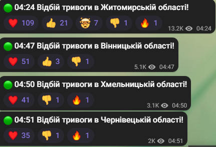 Отбои воздушной тревоги начали объявлять и в других областях страны.