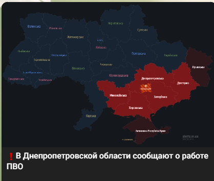 Сообщается, что в Днепропетровской и Херсонской областях работает наша ПВО.