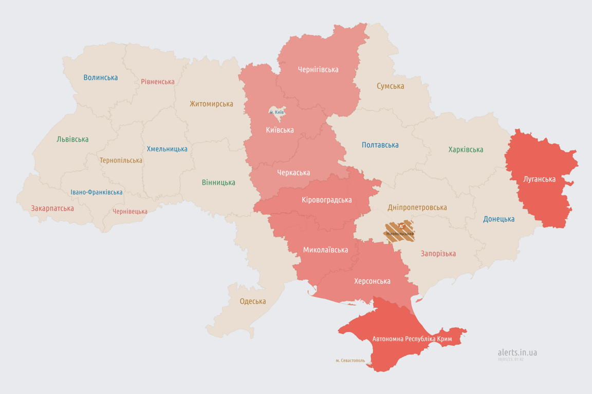 Сегодня ночью, 30 мая, в Украине была объявлена воздушная тревога. Раздавались взрывы в Днепропетровской области, также работало ПВО в Николаевской области.