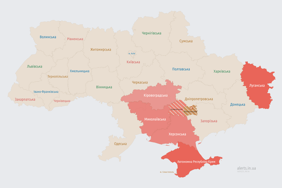 Обновлено 01:44. Пока сообщили об отбое в Херсонской и Николаевской областях.