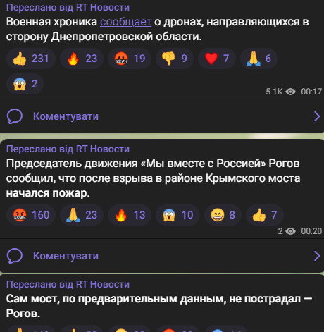 Российские СМИ подтверждают взрывы у моста. Пишут, что сам мост не пострадал.
