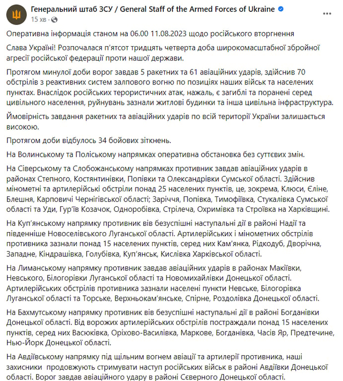 Добавим, что Авиация сил обороны продолжает беспощадно уничтожать врага, о чем идет речь в вечерней сводке Генштаба за 10 августа. ВСУ за сутки нанесли удары по вооружению, технике и личному составу россиян.