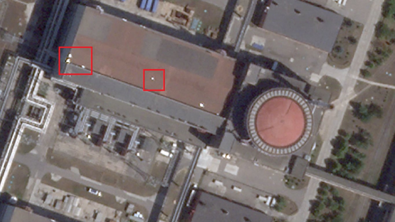 "Їх виявили наш проєкт "Схеми" і російська служба Радіо Свобода на фото, зроблених вранці 5 липня та опублікованих Planet Labs. Роздільна здатність знімку не дозволяє зрозуміти, що саме з'явилося на даху. За даними Генштабу, заміновано також дах ІІІ енергоблоку", — йдеться у повідомленні.