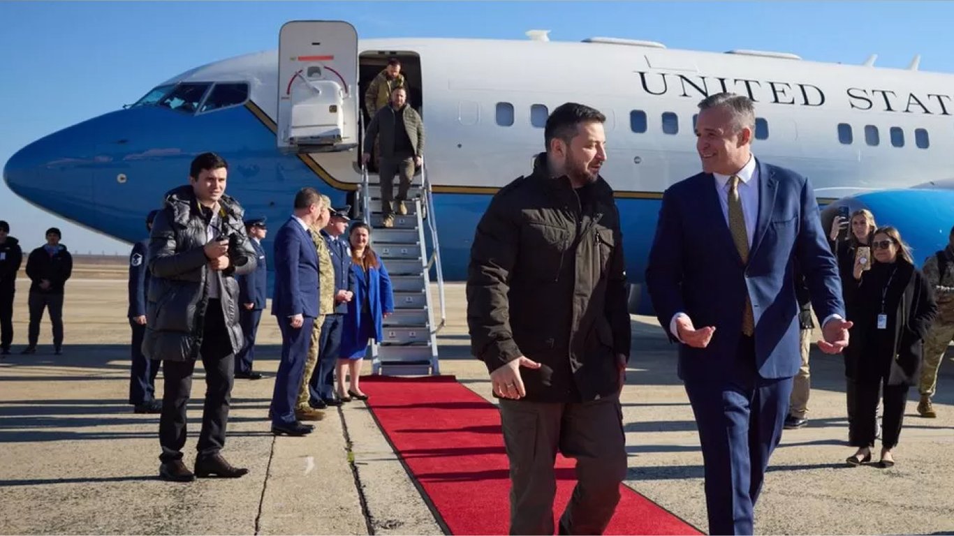Після відвідин лінії фронту на сході України у вівторок, 20 грудня, поїздка Зеленського до Вашингтона, округ Колумбія, почалася з нічної подорожі потягом до Польщі перед тим, як сісти на борт літака ВПС США, як повідомляється, за підтримки літака-розвідника НАТО та винищувача F-15.
