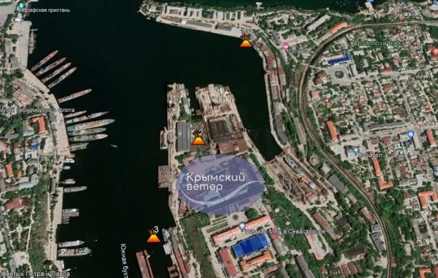 При цьому місцевий Telegram-канал "Кримський вітер" зазначає, що всі три осередки пожеж після удару розташовані на території морського заводу у Севастополі. Два з них — у Південній бухті, ще один — у Корабельній бухті.