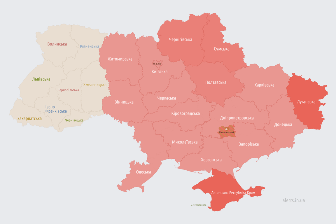 Наразі триває повітряна тривога в більшості областей України.