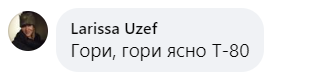 Кадри супроводжувалися із російською озвучкою, в якій розповідали про переваги такого бойового танку, проте ЗСУ вправно вдалося знищити таку "незвичайну міць".