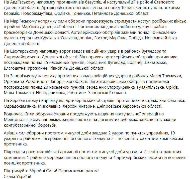 У Генштабі розповіли, де росіяни атакували Україну впродовж доби