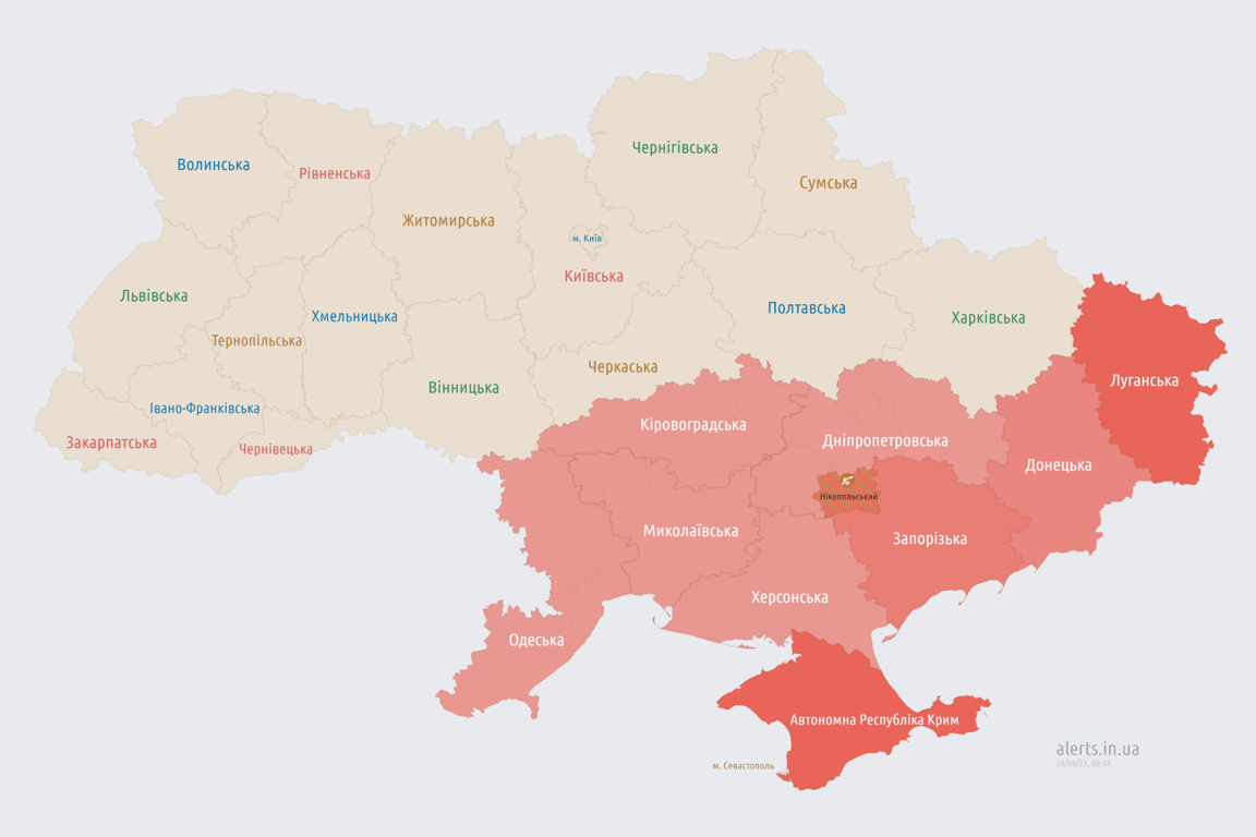 В південно-східних областях України вночі, 20 червня, тривала повітряна тривога. Також пролунали вибухи в Херсонській та Миколаївській областях.