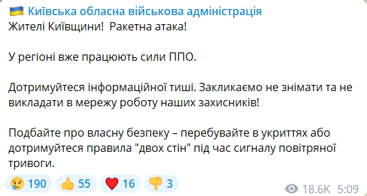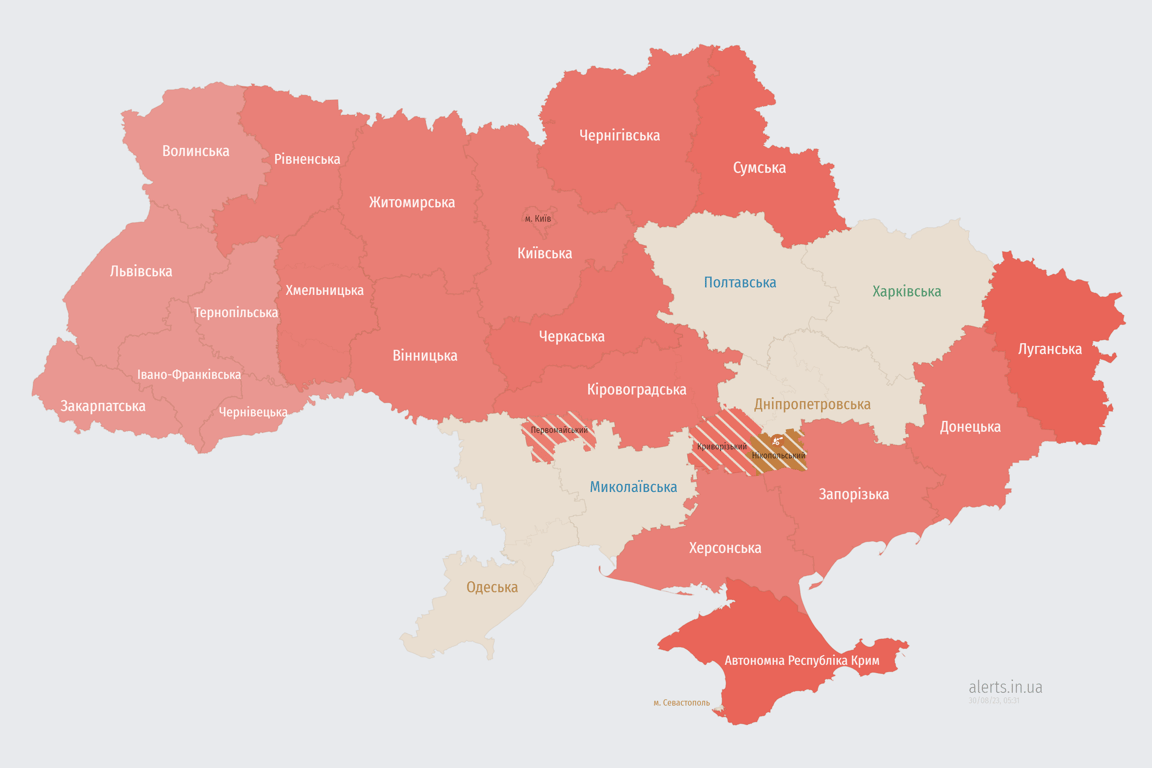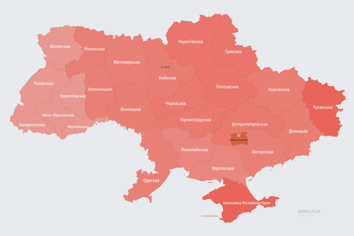 Ракетна атака Росії на Україну вночі, 30 серпня, триває. Потужні вибухи було чути в Києві, ворог обстрілює регіон.