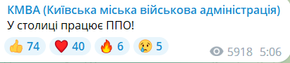 Оновлено 05:24. "У Дарницькому районі падіння уламків на дах торгового приміщення. У Шевченківському — теж падіння уламків. Всі служби слідують на місце", — повідомив Кличко.
