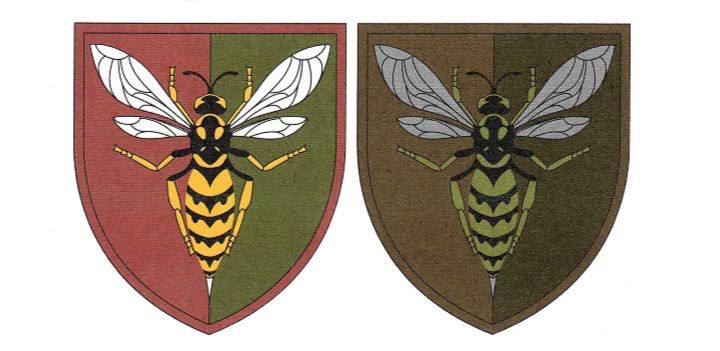 Для військовослужбовців 38-го зенітного ракетного полку створили нашивку, на якій зображена золота оса зі срібними крилами та жалом.