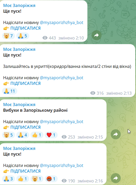 Оновлено 02:19. Також повідомляють про додаткові пуски ракет. Перед вибухами теж були повідомлення про пуски ворожих цілей.