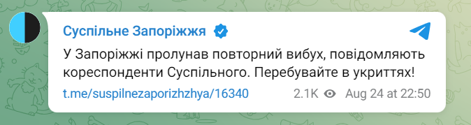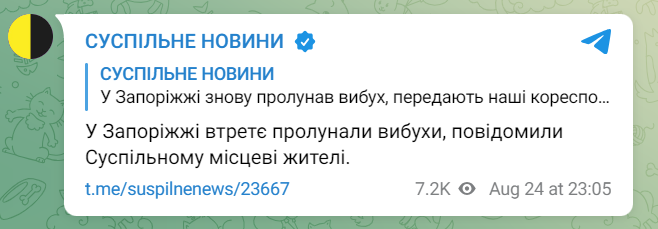 У Запоріжжі місцеві жителі повідомляють про вибух. Наразі в регіоні оголошена повітряна тривога.