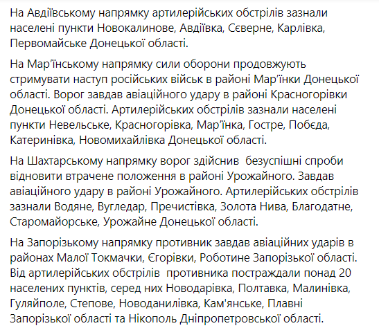Сили оборони України продовжують наступальну операцію на Мелітопольському та Бердянському напрямках, закріплюються на досягнутих рубежах, здійснюють заходи контрбатарейної боротьби.