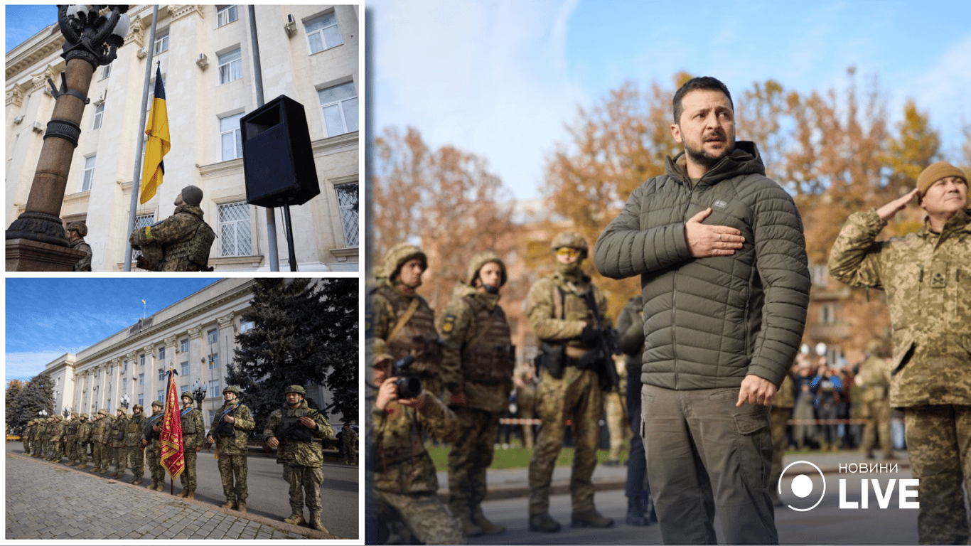 Президент України Володимир Зеленський відвідав деокупований Херсон. Глава держави взяв участь у церемонії підняття державного прапора України біля будівлі ОДА.