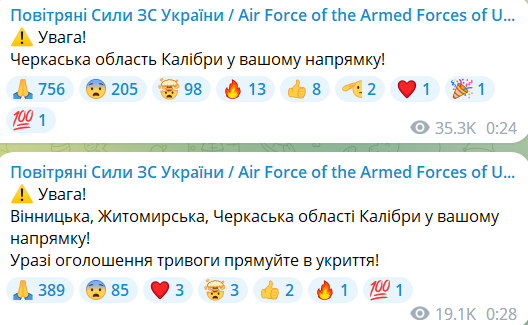 Оновлено 00:30. У Повітряних силах повідомляють про ракети в низці областей.